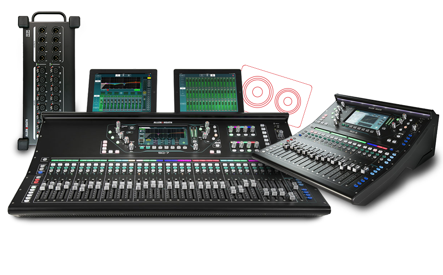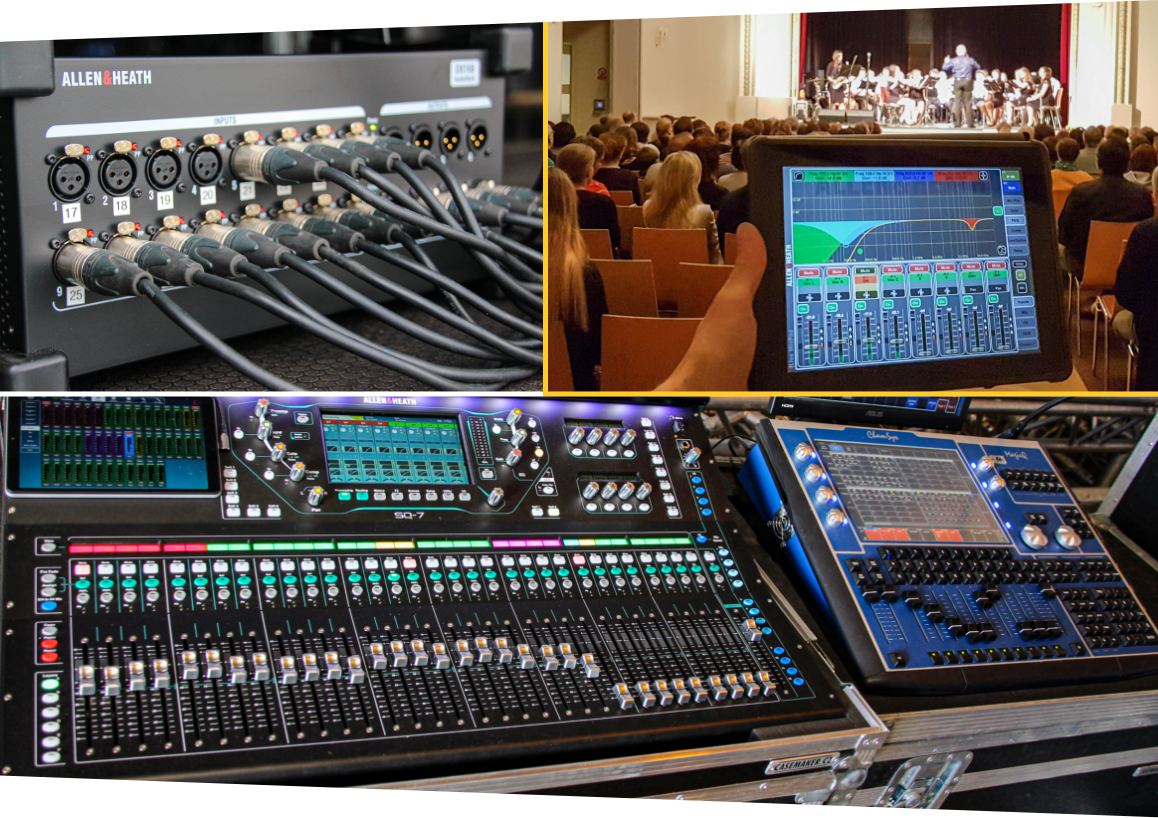 Ke zpracování audio signálu používáme digitální mixážní pulty SQ-5 a SQ-7 značky Allen & Heath, které umožňují plnou kontrolu nad zvukovou složkou scény