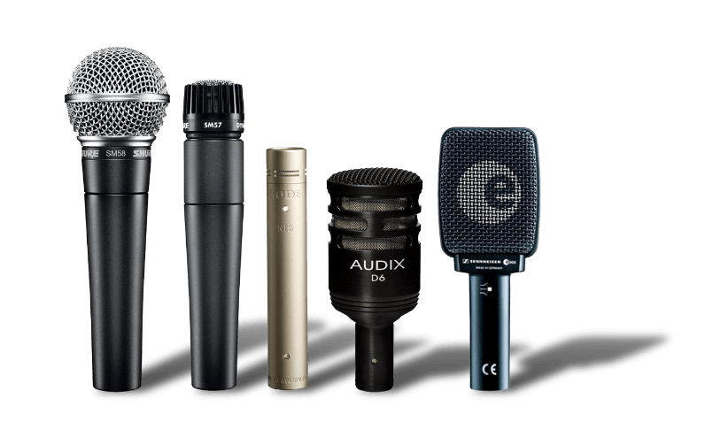 Pro náběr zvuku slouží naše široká škála mikrofonů od značek Shure, Audix, Sennheiser nebo Rode. V tomto